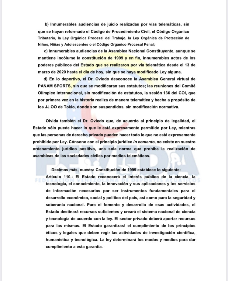 1.- El Gobierno Bolivariano apoya las amenazas y propicia una desafiliación deportiva que traería graves consecuencias a un país que necesita reconciliación…