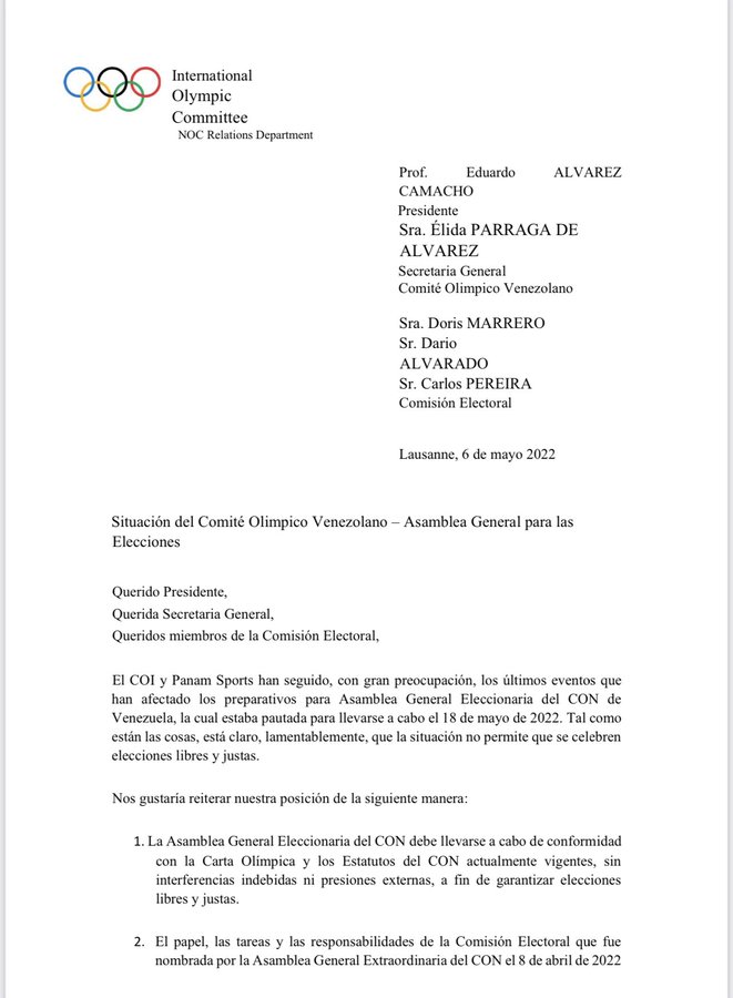 2.- Si lograr respetar los acuerdos del COI y que se realicen elecciones con las planchas inscritas bajo la observación del COV y que sean el movimiento federativo quienes decida quien lleva las riendas de la Casa Olímpica de Venezuela ubicada en Caracas y con más de 80 años de gestión